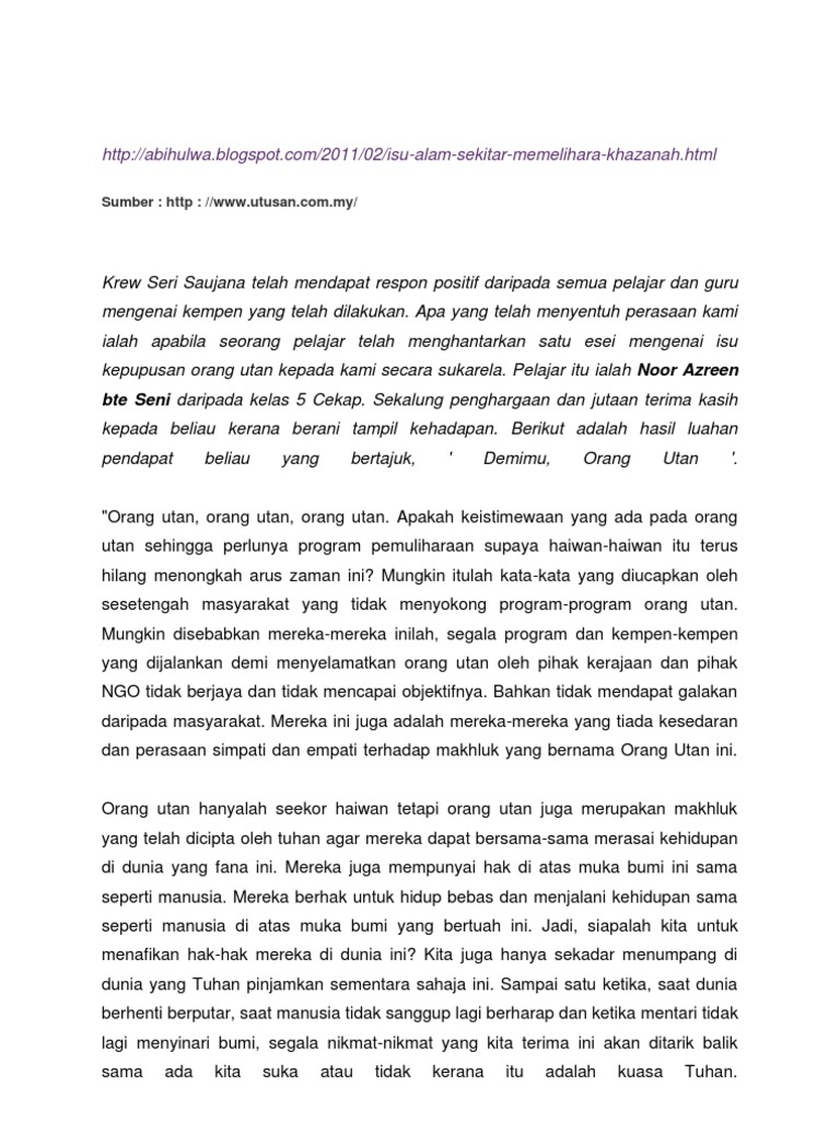 Contoh Contoh Karangan Sekolah Rendah Fakta Cara Cara Mengelakkan Kepupusan Pdf